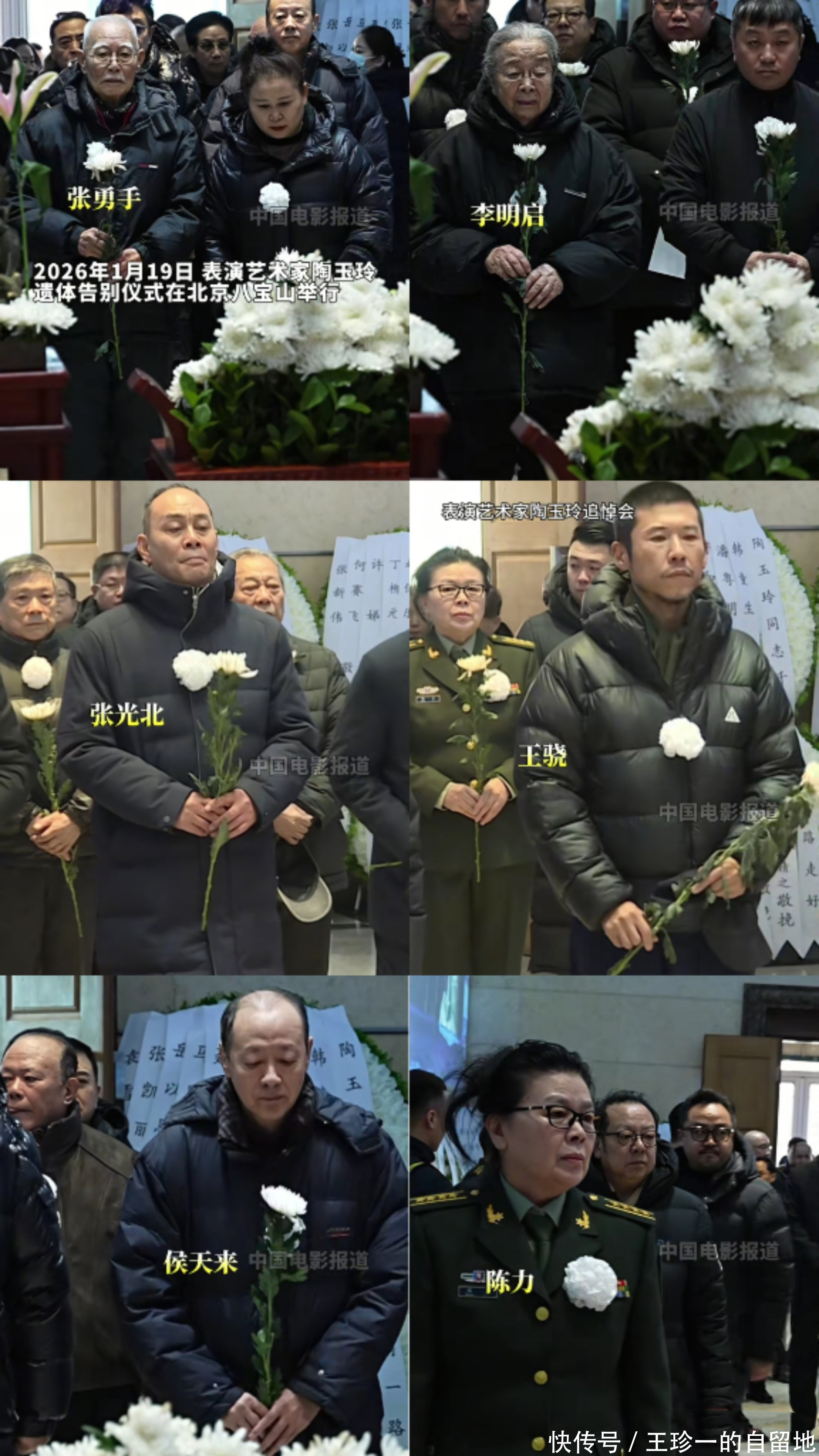 告别仪式开始后,众人陆续进入灵堂,可以看到张勇手、冯恩鹤、侯天来、戚慧、王为念、王骁、吴若甫、张光北、黄宏、郁钧剑、侯勇、蓝羽等演艺界人士都来到了现场,送陶玉玲最后一程。